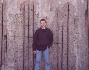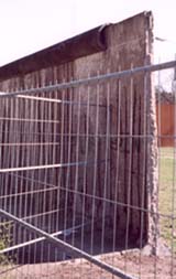 The below left picture is me in front of the wall and the below right is a simulated area of what it was really like behind the wall. This section of the wall has large iron walls on both ends and then a bunch of large chuncks of concrete stacked along the backside. The area in the middle is the general size that was usually patrolled during the time the east and west was divided. Usually dogs ran through here and would attack anyone found in here. Guards as well kept an eye on this and would shoot anyone found in here. The concrete on the backside had 1/2 inch cracks to look through to give one a good impression of what this bleak area looked like.